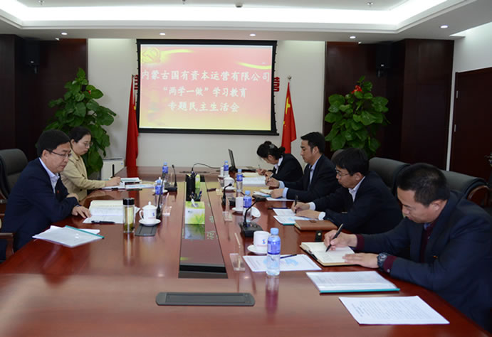 推进“两学一做”学习教育常态化制度化,对于进一步用习近平总书记系列重要讲话精神武装全党,加强和规范党内政治生活,保持党的先进性和纯洁性,增强党的生机活力,具有重大而深远的意义。为深入贯彻落实十八届六中全会精神,推进全面从严治党向基层延伸,推进“两学一做”学习教育实现常态化制度化,根据《内蒙古自治区党委办公厅关于认真开好县处级以上党和国家机关党员领导干部“两学一做”学习教育专题民主生活会的通知》文件精神,进一步贯彻落实习近平总书记关于推进“两学一做”学习教育常态化制度化的重要指示,学习廖俊波同志的先进事迹,以自治区两个反面典型案例为镜鉴,国资运营公司党总支于4月27日召开了“两学一做”学习教育专题民主生活会。公司党总支书记王力军主持了会议。自治区国资委企业人员管理处(人事处)副处长张静代表国资委党委到会指导。公司领导班子成员参加了会议。